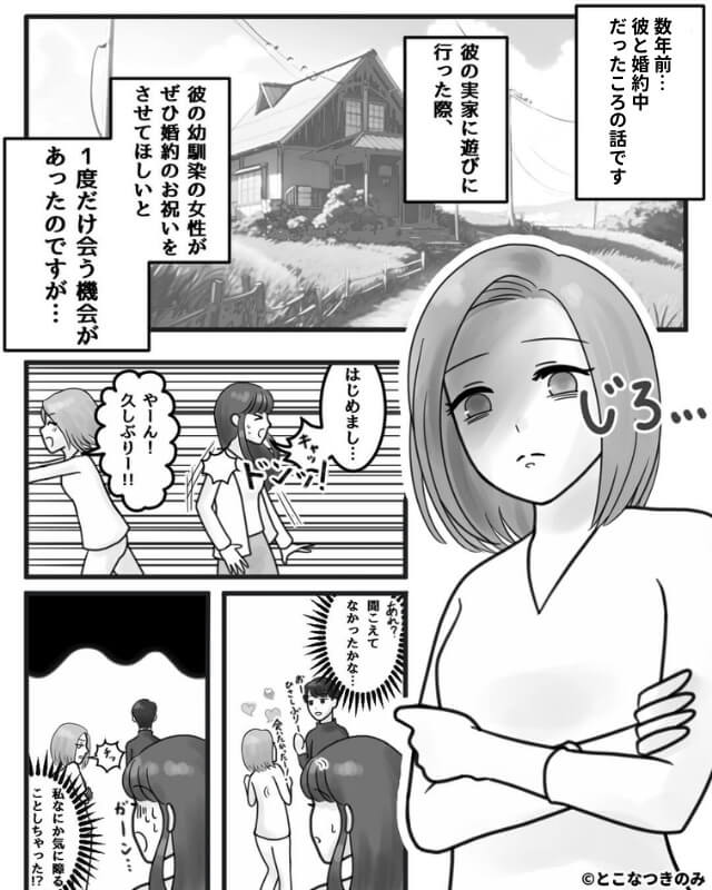 彼の実家へ遊びに行った際、彼の幼馴染だという女性と、初めて顔を合わせることになりました。