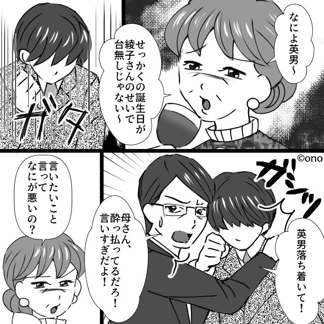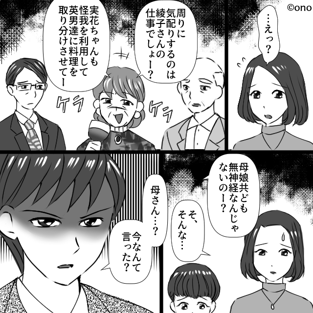 食事会で「気が利かない!」と嫁を嘲笑う義母。しかし次の瞬間『母さん…?』ニコッと笑った夫の【一言】に場が凍りつく!?