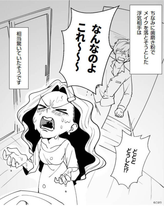 浮気相手は、洗面所に置きっぱなしにしていたメイク落としを使い、中身が歯磨き粉だったことに気づいたようです。