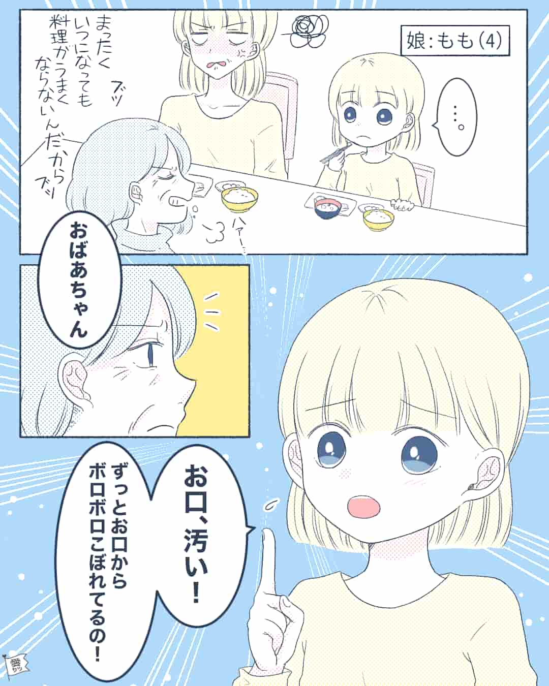 しかし次の瞬間、一緒にご飯を食べていた娘が「おばあちゃん、お口汚い!」と言ったのです。