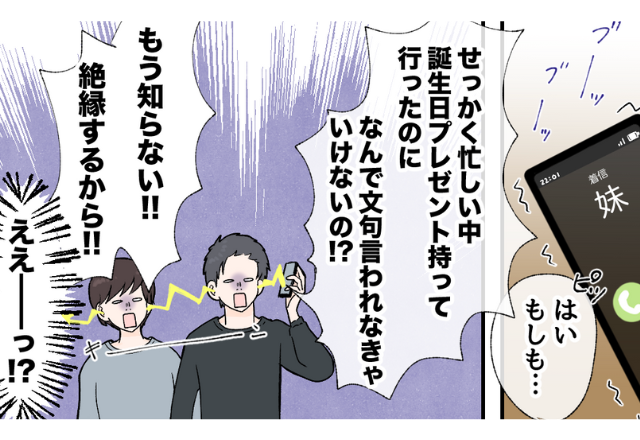 「せっかく忙しい中、プレゼント渡しに行ったのになんで文句言われるの!?もう絶縁するから!!」と大声で言われたのです。