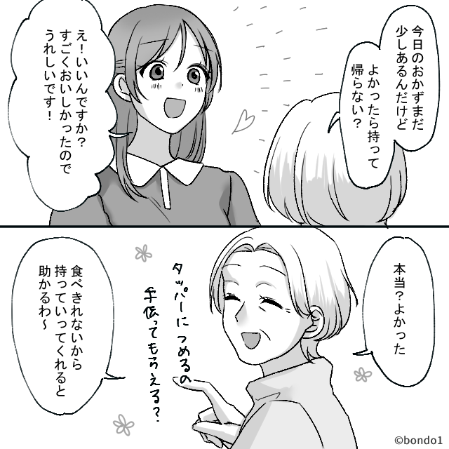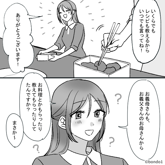 手料理をおすそ分けしてくれる“優しい”義母。しかし保存容器に詰めている最中⇒義母の【まさかの発言】に…嫁「え…?」