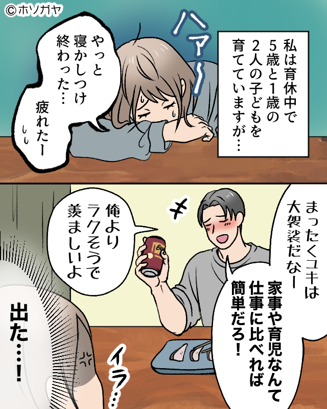 「ラクそうで羨ましい」家事育児を軽視する夫。しかし翌日⇒妻が病院から帰宅すると…「な、なによこれ!」