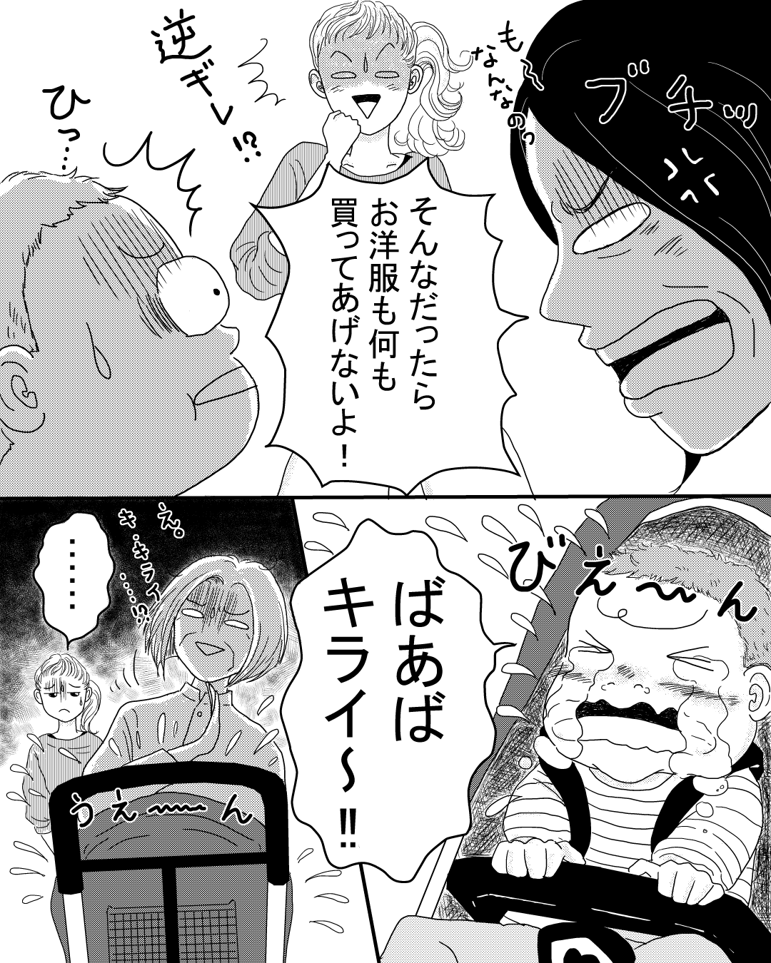 次の瞬間「もー!なんなの!?もう服買ってあげないわよ」と義母が息子を大声で怒鳴ったのです。