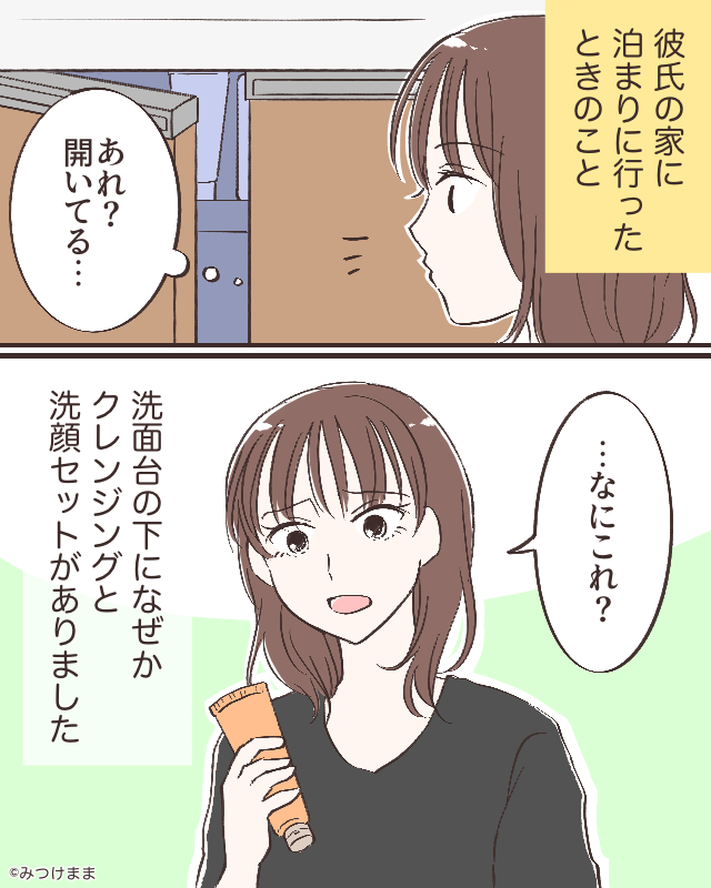 その後彼を問い詰めると、あの洗顔セットはその女性のもので、何度も彼の家に泊まりに来ていたことがわかりました。