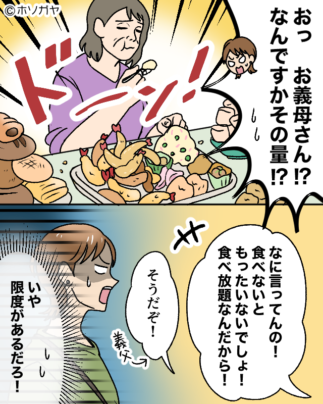 しかし「食べ放題」で周囲の目を気にせず意地汚さを見せる義母に、恥ずかしい思いをすることも…。