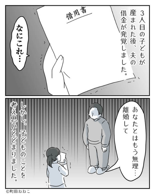 これは、3人目の子どもが産まれた直後に発覚した、夫の借金についての話です。