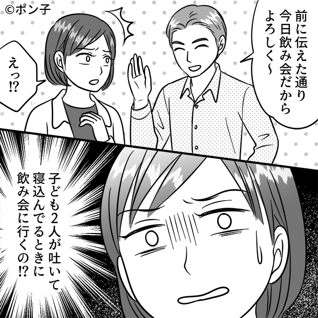 息子2人が嘔吐しても…夫は“予定通り”飲み会へ!?しかし帰宅後⇒夫に【天罰】が下った話。