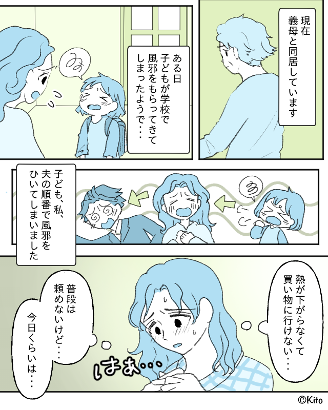 今回紹介するのは夫、子ども、そして自分(妻)が熱で動けない状況にもかかわらず義母から厳しい言葉をかけられたという体験談です。