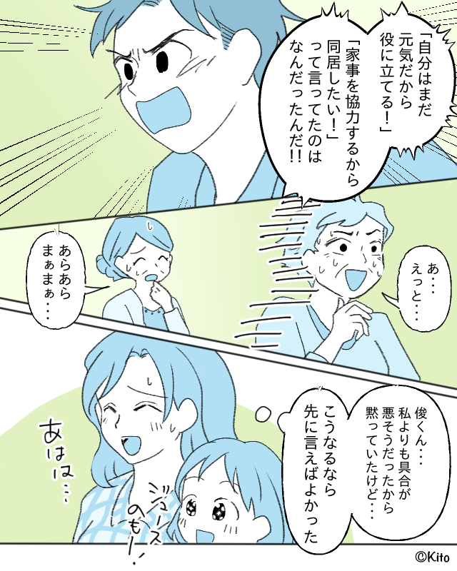 義母に対して強く言えない夫も多い中、この体験談の夫は最後に義母を一喝するという、少しスカッとする場面も盛り込まれています。