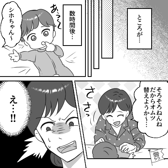 ところが数時間後、就寝前におむつを交換するために娘の服を脱がせると…私は「え…!!」と青ざめました。