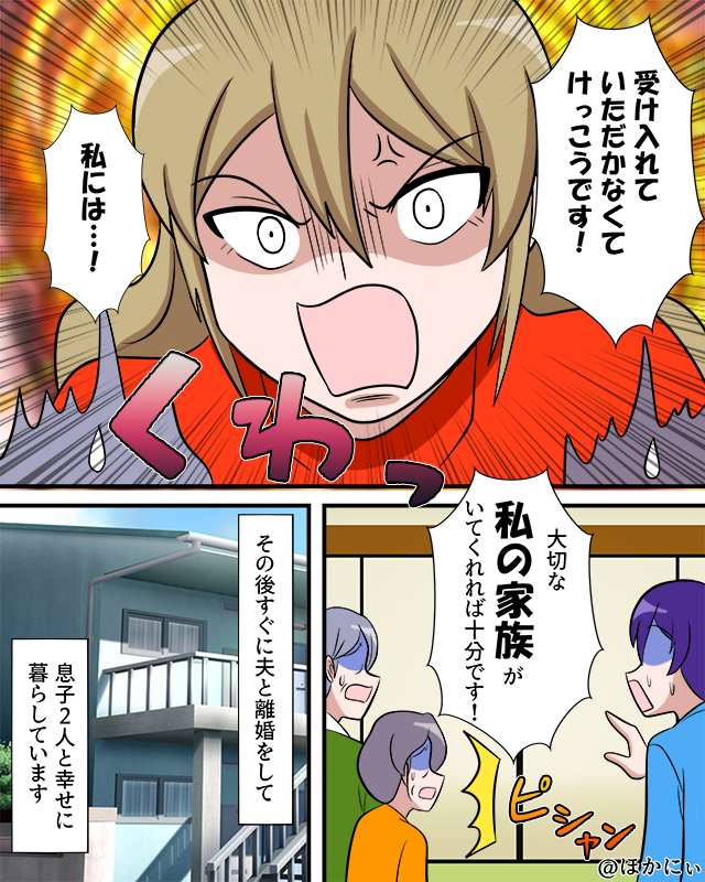 しかも義父母が夫の味方をするという、妻としては理不尽きわまりない状況。
