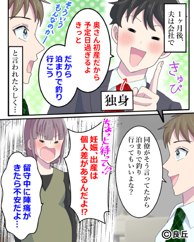 独身の同僚の方から「奥さんは初産だから、きっと予定日すぎるよ。だから泊まりで釣りに行こう」と言われたらしいのです。