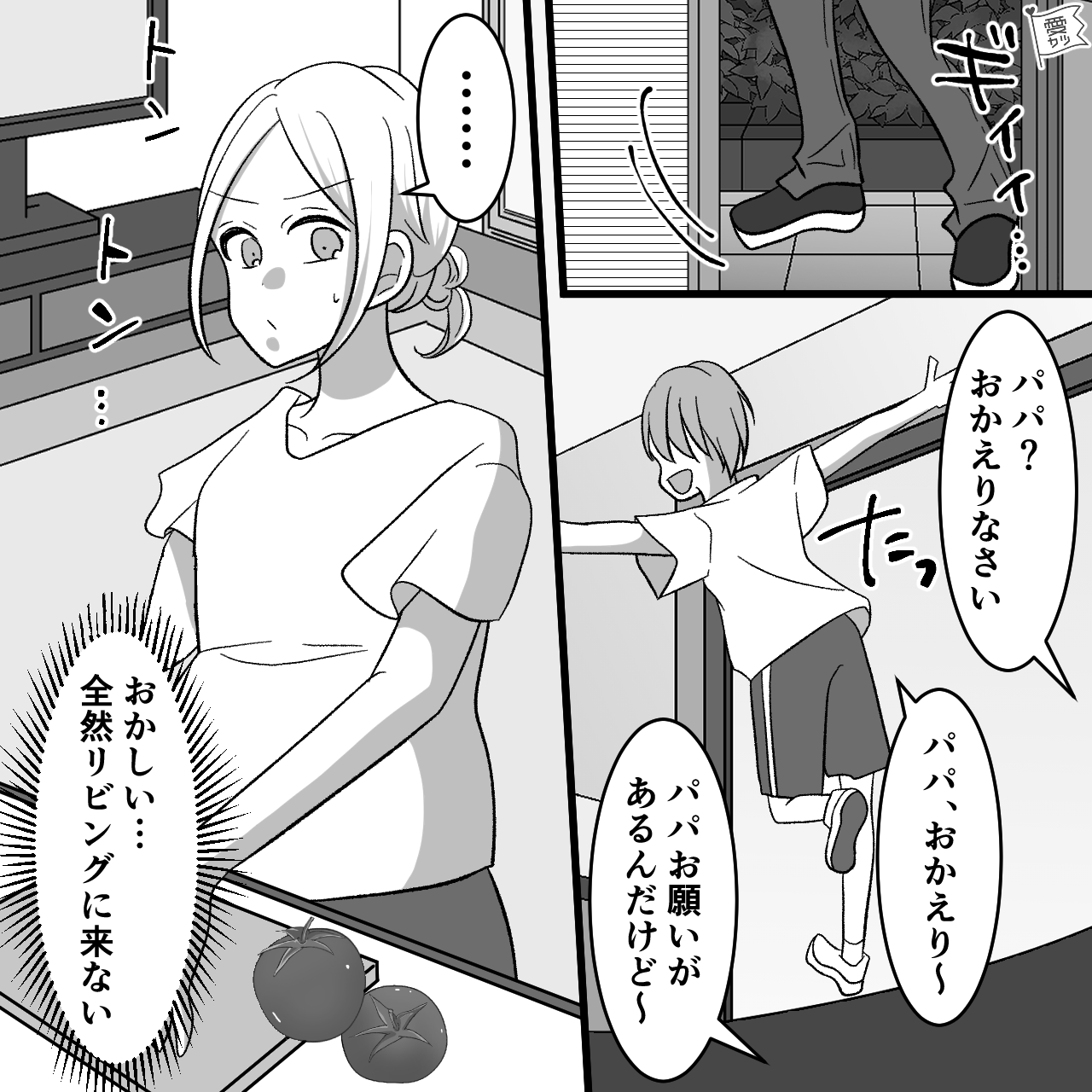 息子が「パパおかえりー!」と嬉しそうに玄関へ向かったのですが、数分経っても戻ってこないのです。