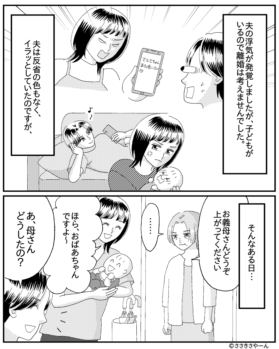 反省しない浮気夫の元に…義母が登場。直後⇒無言で立ち尽くす義母が【とった行動】に夫は動揺!?