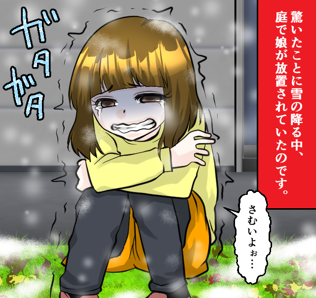 驚いたことに雪の降る中、庭で娘が放置されていたのです。