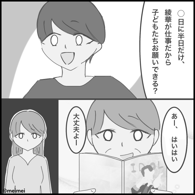 義母に子守をお願いするも【推し活】優先で約束放棄!?激怒した嫁は⇒『お義母さんには頼みません!その代わり…』