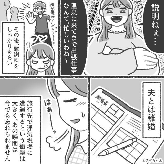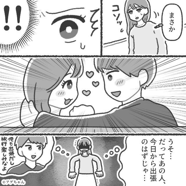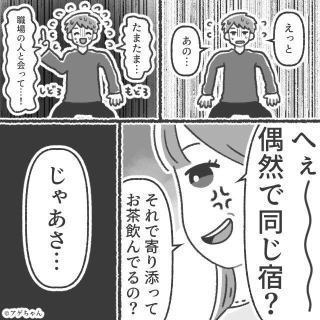 出張の実態は浮気旅行。温泉宿でイチャつく夫だが⇒「出張って…ここ?」笑みを浮かべた妻の登場で『えっと…あ…』