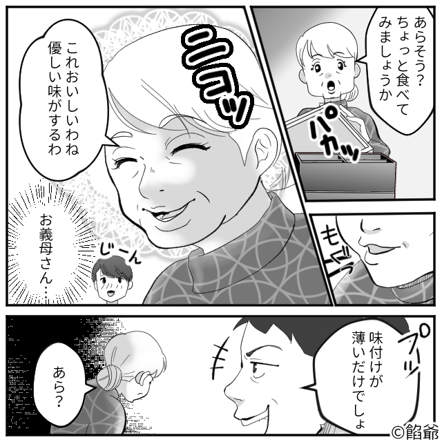 息子の前で…嫁の手料理を“酷評”する夫。しかし後日⇒親戚の集まりで「あら?」義母が放った【言葉】に、たじたじ!?