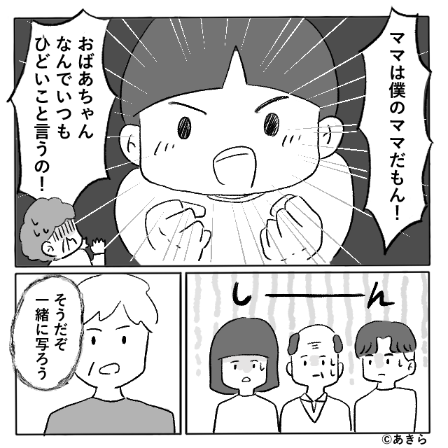 「血のつながらない他人」家族の記念撮影で“嫁だけ”外す義母!?しかし⇒親戚一同の前で…息子が【撃退】した話