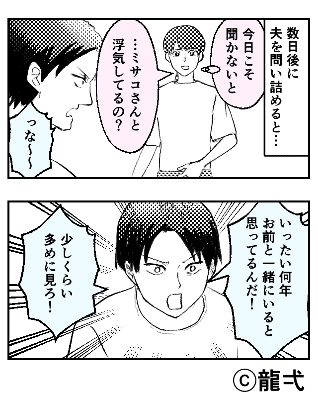 数日後“今日こそ聞かないと”と意を決し「…ミサコさんと浮気しているの?」と夫を問いただしました。