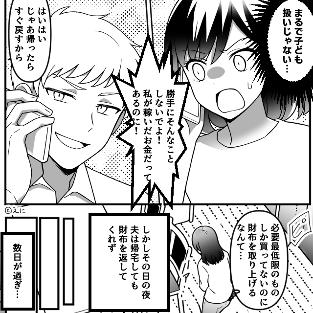 必需品の購入すら「無駄遣い」妻から財布を奪った夫。しかし⇒妻「…聞いて?」怒りの反論で形勢逆転!?