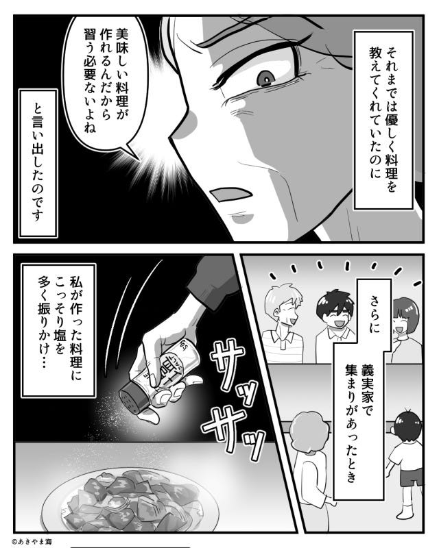 さらに義実家で集まりがあった際、私が作った手料理に義母はこっそり塩を多くふりかけていたのです。