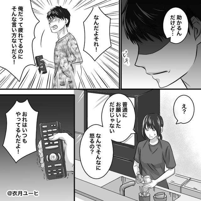 モラ夫がリモコンを投げつけ…壁に“ヒビ”が!?すると⇒妻が【目も合わせず放った言葉】に…夫「え!?」