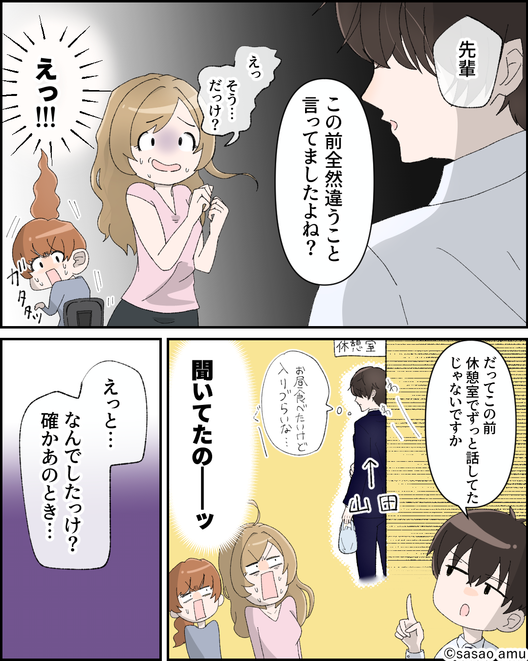 さらに「あのとき、昔から彼氏途切れたことなくてぇって言ってましたよね?」と言うと、後輩は「会議なんで失礼します」と去って行きました。