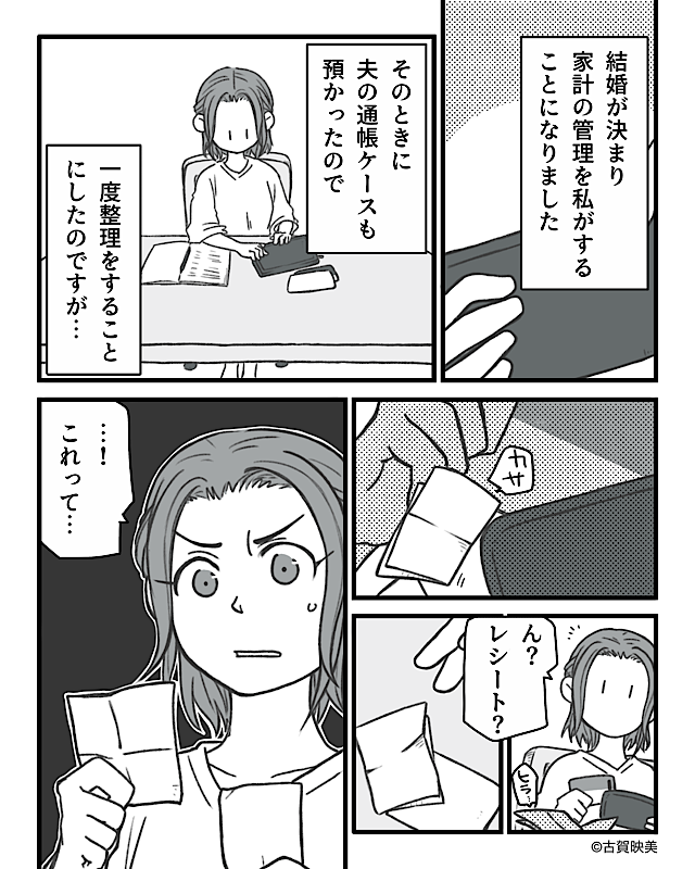 結婚後、家計管理を任された妻。しかし“夫の通帳”を開いた瞬間⇒数枚のレシートが落ちて…妻「これって…!」