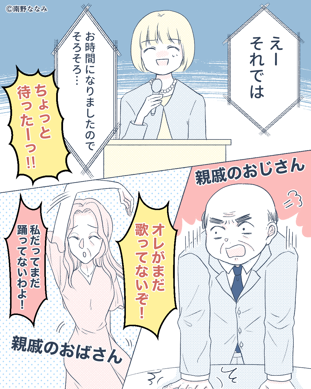 さらに、夜の部で次の組がおらず余裕を感じたからか、他の親族たちも持ちネタを披露したいと言い始めて…。