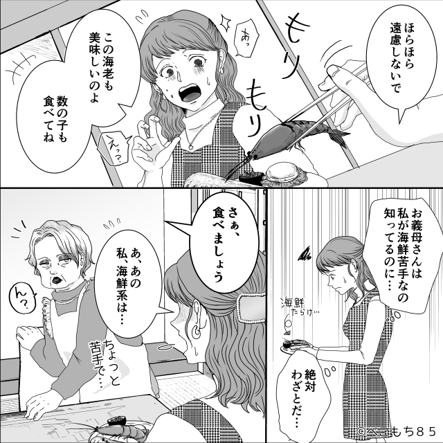 海鮮が苦手と知りながら…“強引に”食べさせる義母。しかし翌年⇒嫁が【巧みな方法】で黙らせ、立場逆転!?