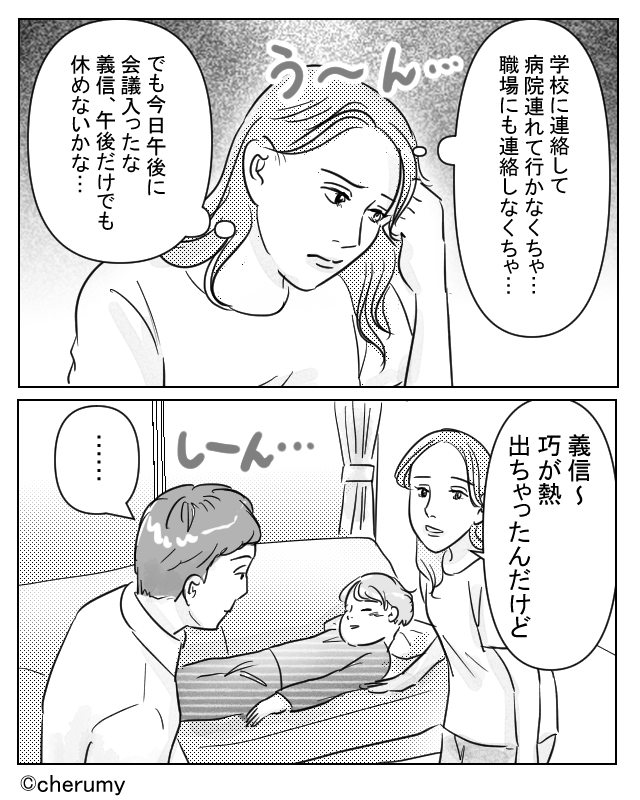 高熱の子どもを“完全無視”する夫。しかし直後⇒妻『ハッ…』気づいてしまった“イヤな予感”に絶句!?