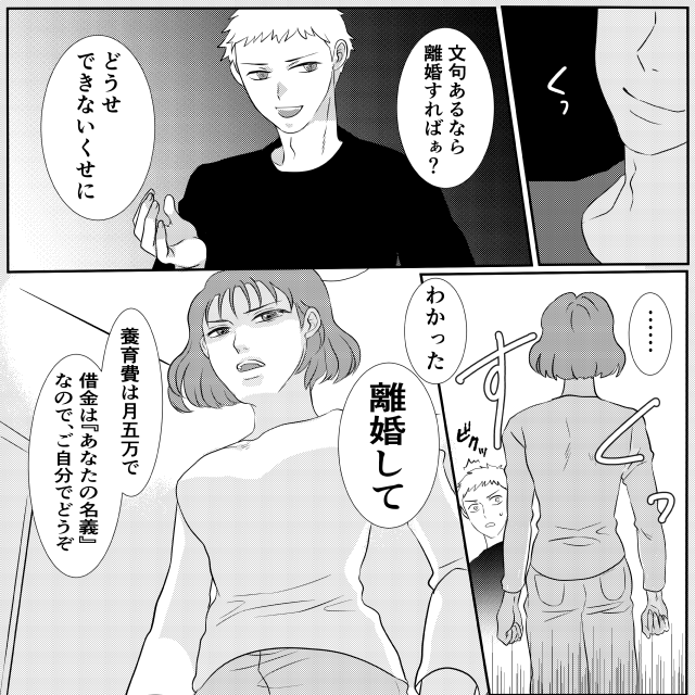 しかし夫は「文句あるなら離婚すればぁ?どうせできないくせに」と、挑発するように笑っていました。