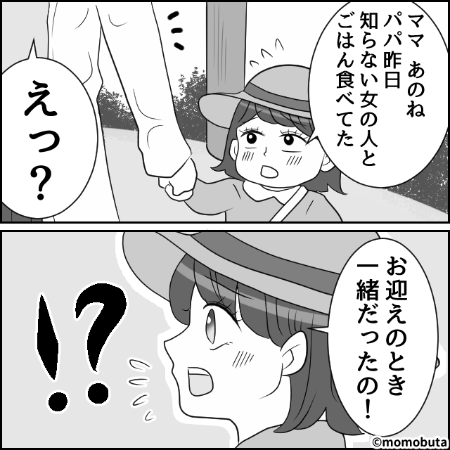 「あのね、パパ昨日…」娘から浮気の目撃報告。帰宅後、夫を問い詰めると⇒「…っ!?」冷や汗を流し始めて…!?