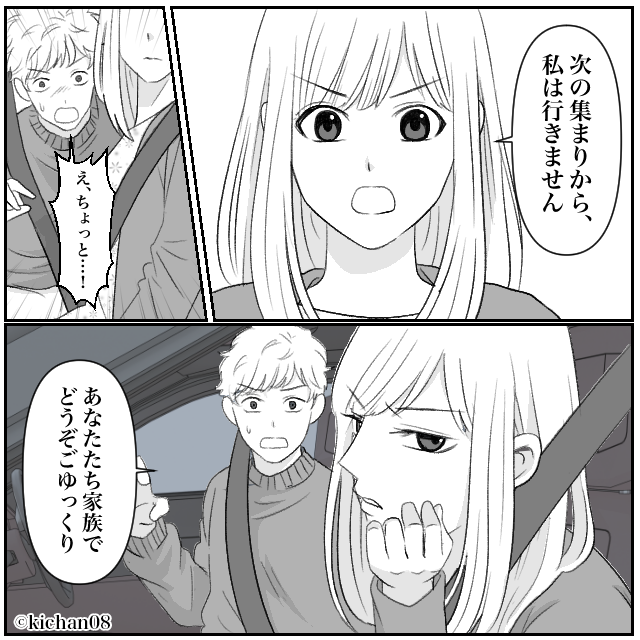 義実家で”無視される妻”を…見て見ぬふりする夫!?だが帰宅中⇒妻が告げた【決断】に夫「え、ちょっと…!」