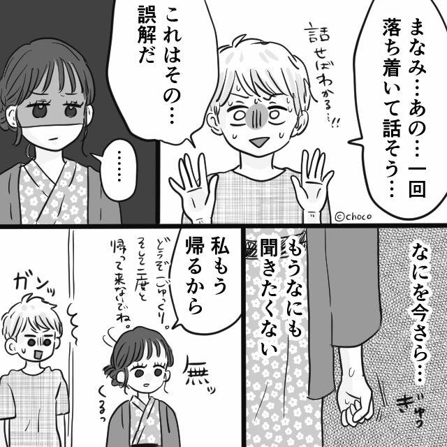 妻に内緒で浮気相手と旅行中の夫。だが【ピンポーン】妻が浮気現場に突撃!?「慰安旅行って個室なんだね」
