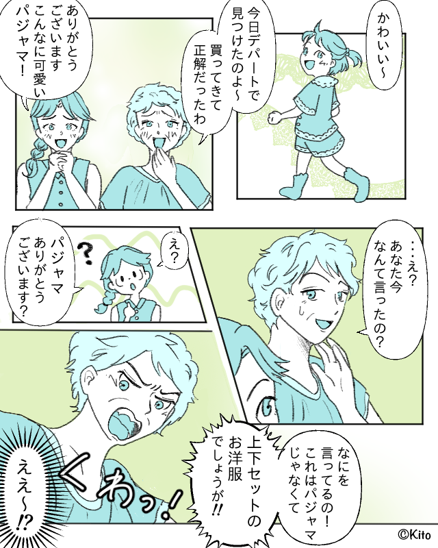 「あなた何言ってるの!これはパジャマじゃなくて上下セットのお洋服でしょうが!!」と義母はブチギレ。