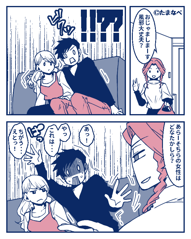 「お邪魔しまーす。風邪、大丈夫?」と私が家に入ると、元気そうな彼が見知らぬ女性と一緒にいたのです。
