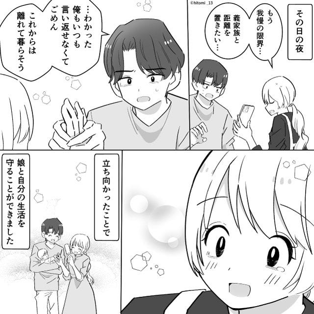 対立を避けるために我慢を重ねるのではなく「自分と大切なものを守る」という強い意志と、そのための冷静な行動が、状況を一変させたといえるでしょう。