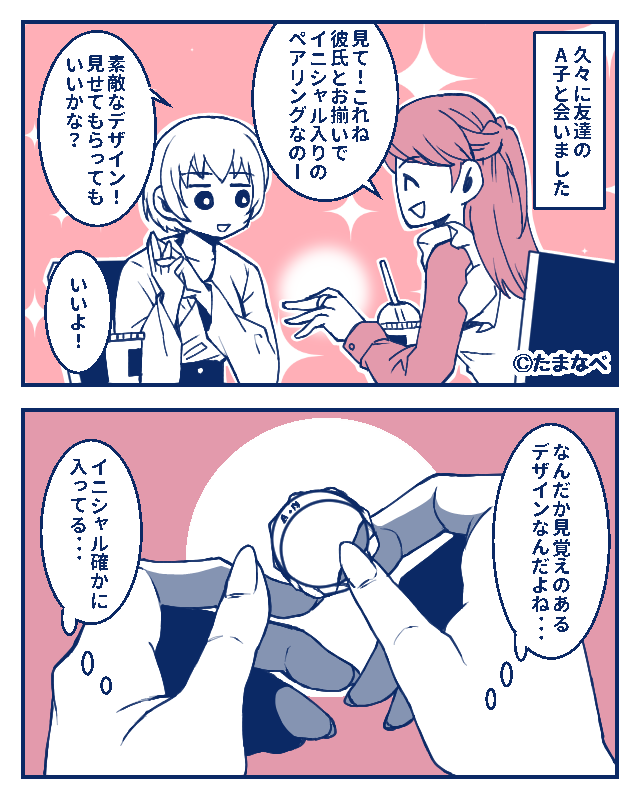 私は『A子と同じ指輪…じっくり説明してもらおうじゃないの…』と、強い怒りを感じたのでした。