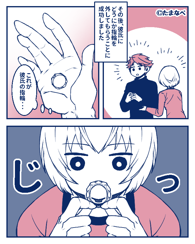 その後、彼にもどうにか指輪を外して見せてもらうことに成功。