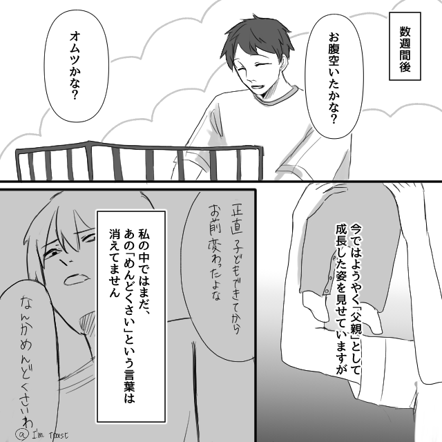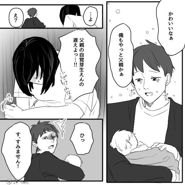 出産後、生まれた我が子を前にして、夫にも父親の自覚が芽生えたようです。