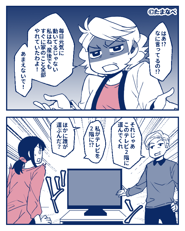結局、私は産後2週間の体で重いテレビを2階まで運びましたが、このときのことは二度と忘れません。