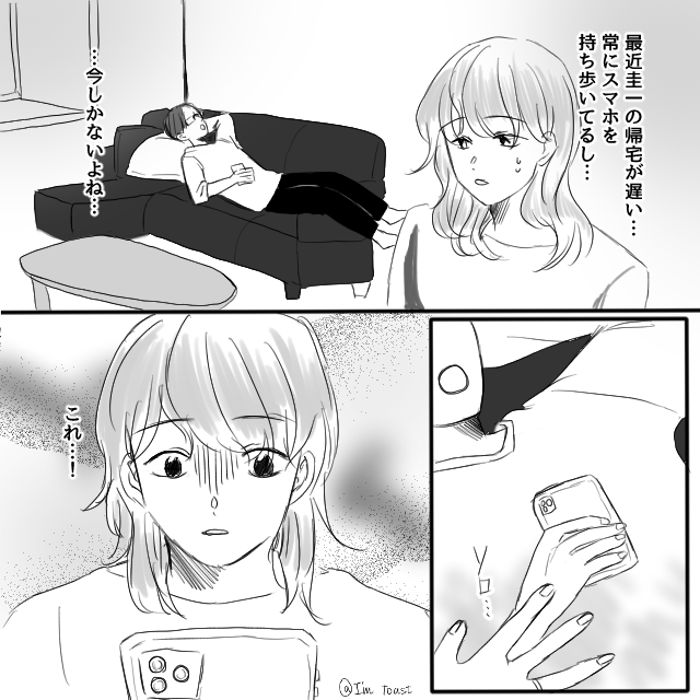 夫の帰宅時間が遅くなり、スマホを肌身離さず持ち歩く…。