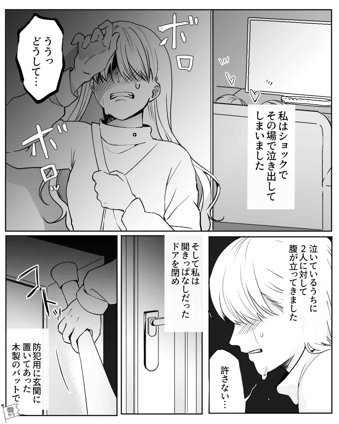 同棲中の家で…彼と“友人”が浮気中!?しかし⇒悲しみを通り越した彼女が【木製バット】を手にしたワケ。