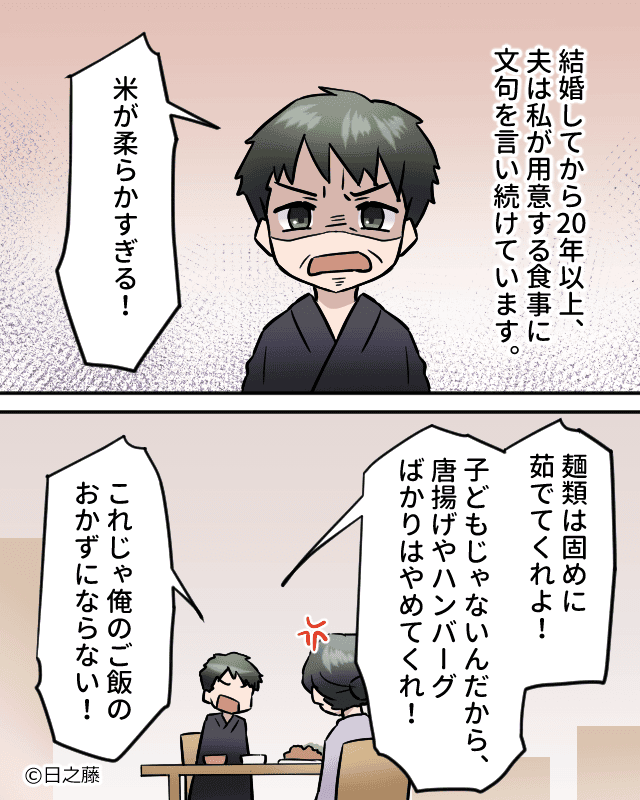 結婚してから20年経ちますが、相変わらず夫は、私が用意する食事に文句を言い続けています。