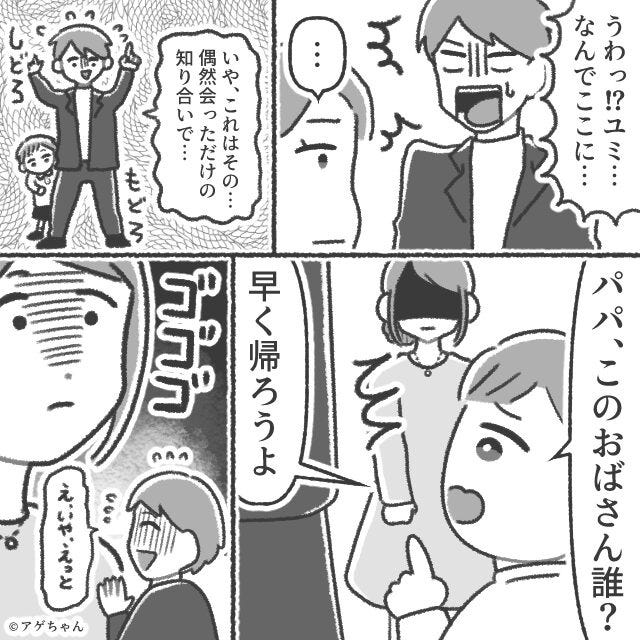 「パパ、このおばさんだれ?」知らない子どものパパは…夫!?妻がワケを問い詰めると⇒真っ青な夫「え、いや…」