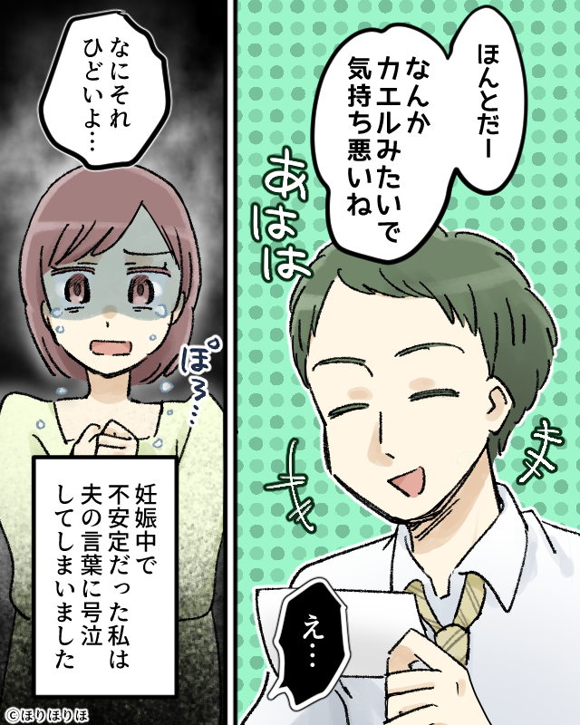 夫は「ほんとだ!カエルみたいで気持ち悪いね」と笑いながら言うのです。