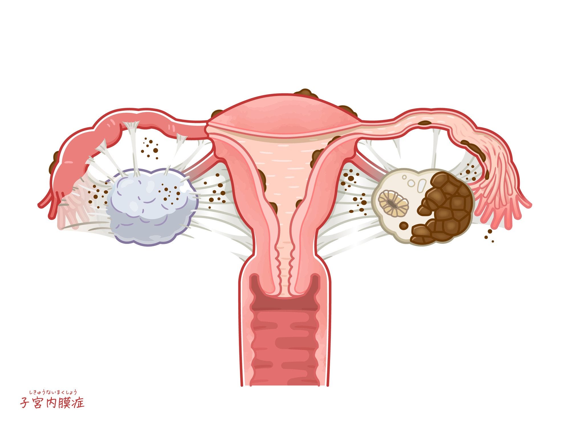 すると、お腹の中のどこかに子宮内膜が付着し、女性ホルモンの影響で子宮外の場所で内膜が厚くなり、出血が起きる。これが「子宮内膜症」です。